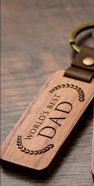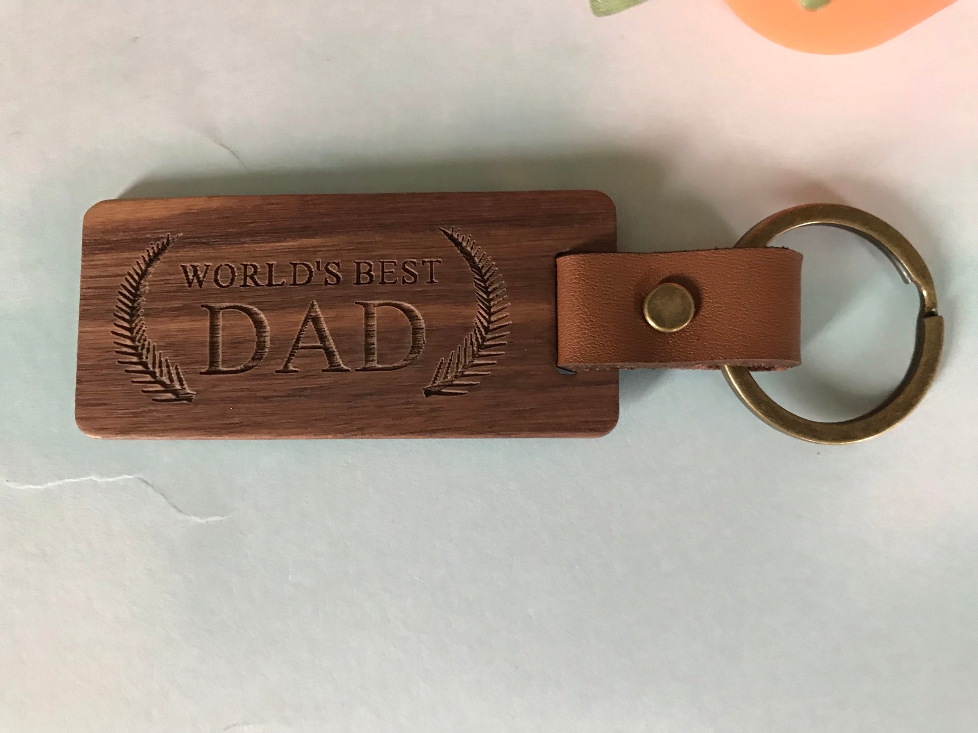Fathers Day KeyChain Walnut Wood with Leather -BEST DAD