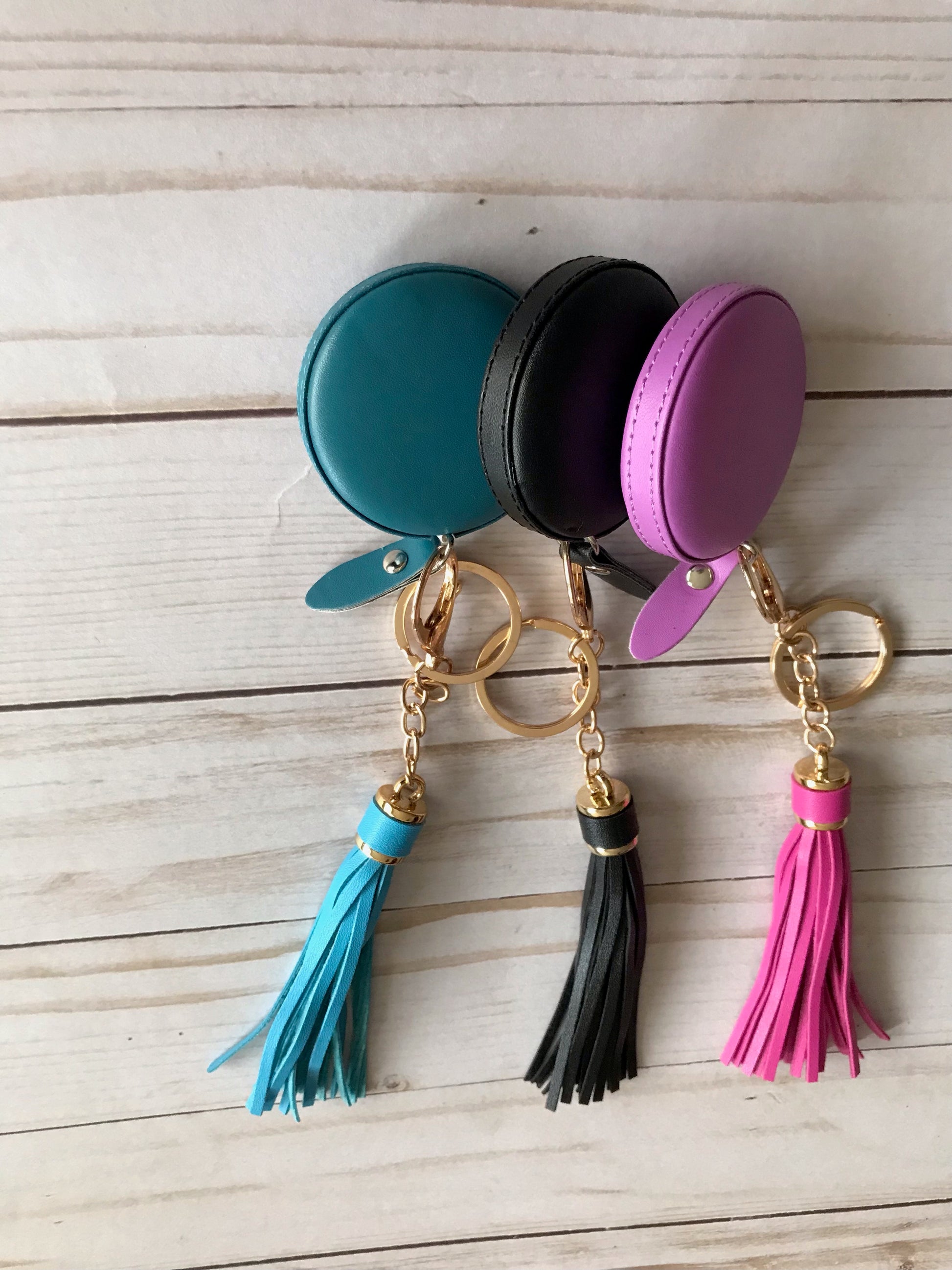Mini Tape Measures with Clip on Faux Leather Tassels
