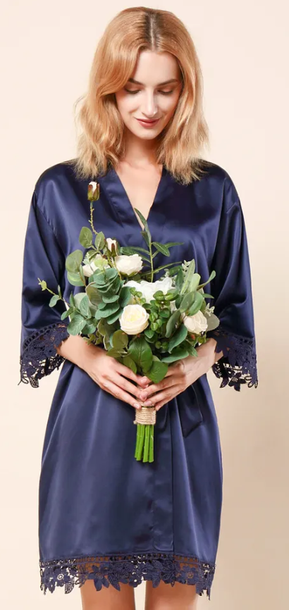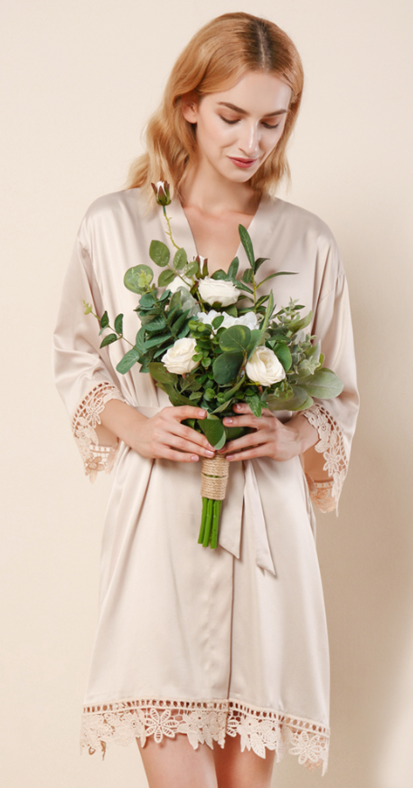 Popular style in Bridal robes. Available in 8 colors and 2 sizes