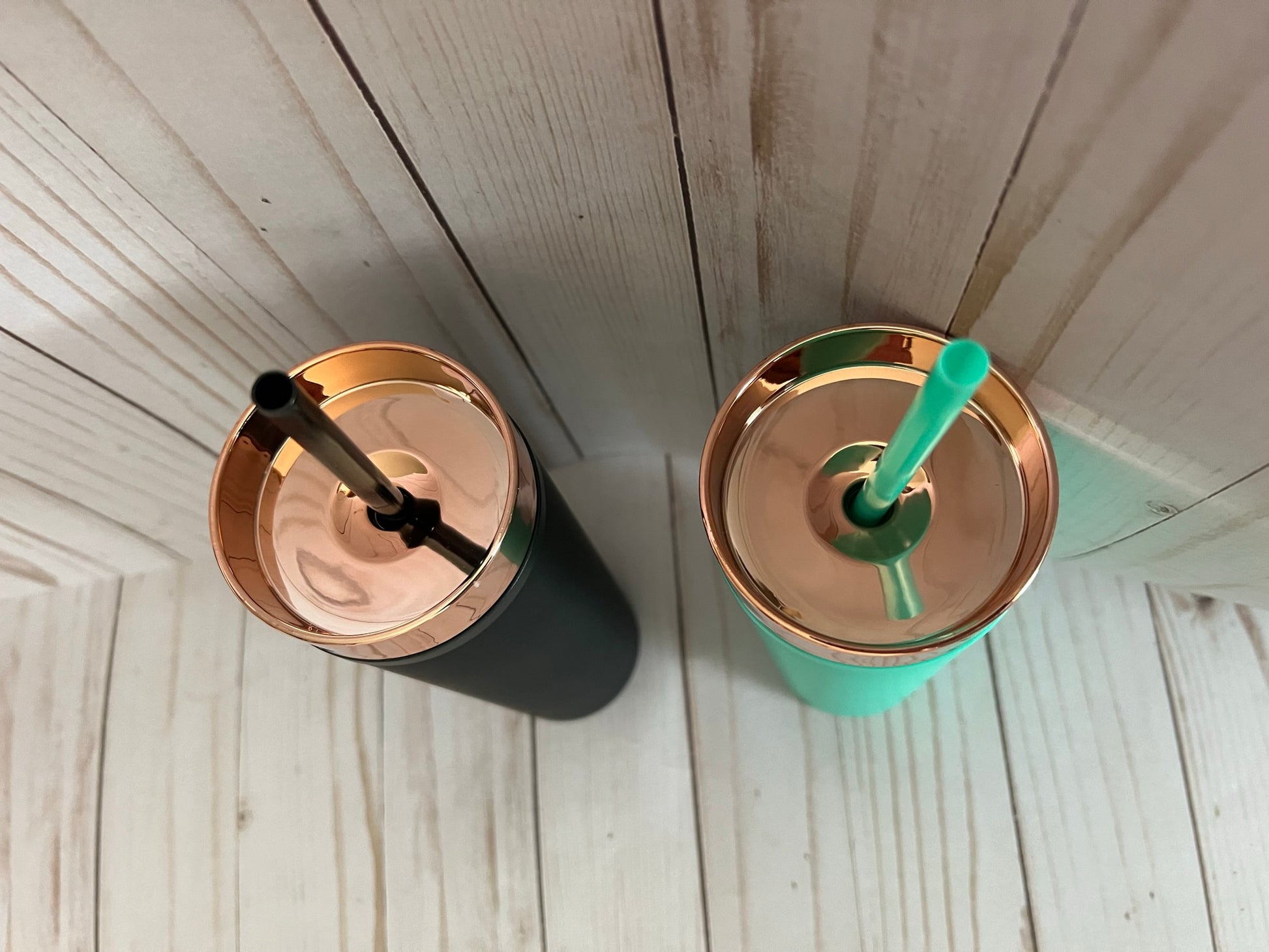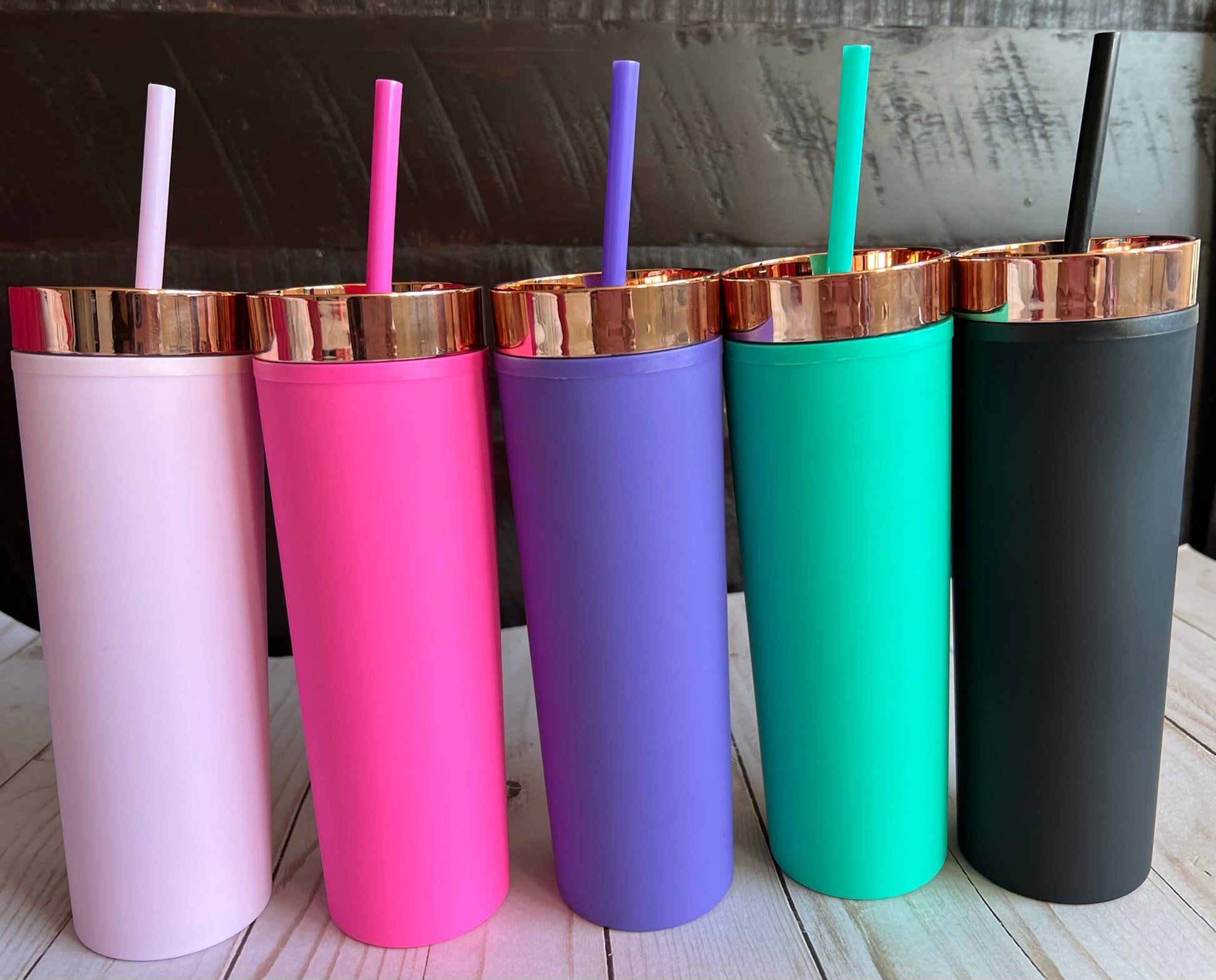 Soft Matte Arylic Tumbler with Rose Gold Lid